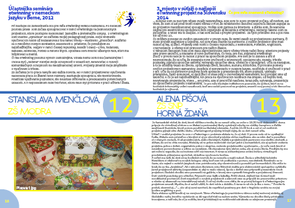 ... doteraz som sa nad tým nijako zvlášť nezamýšľala. Kde som to slovo prvýkrát počula, už neviem, ale viem, že som si asi pred tromi rokmi všimla v POP, že ministerstvo školstva odporúča školám zapájať sa do projektov medzinárodnej spolupráce. Trošku som pátrala na internete a zistila som, že Národná služba pre elektronickú spoluprácu škôl organizuje aj školenia k eTwinningu. Jedného takého som sa zúčastnila a hneď ma to zaujalo. A tak som začala s prvými projektmi. Za tých približne dva a pol roka ich už bolo 10.