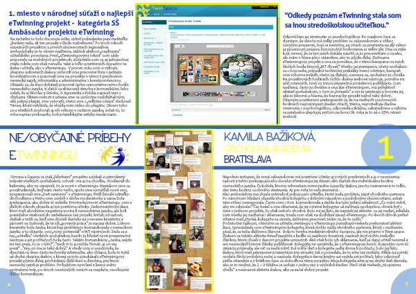 Počiatočné ťažkosti, s ktorými sa učitelia stretávajú v eTwinningu pomáhajú niekedy prekonávať aktívni žiaci. Sprevádzala som eTwinningom kolegyňu, ktorá rýchlo našla vhodného partnera, ktorý s nadšením písal, že sa tešia ďalšiemu členovi. Bola to tvorba medzinárodného časopisu, ale nie priamo v Twin space. Žiakom sa takáto aktivita ihneď zapáčila a keďže sú jazykovo kreatívni, napísali dosť rýchlo niekoľko článkov, ktoré chceli v danom projekte umiestniť. Aké však bolo ich sklamanie, keď sa daný učiteľ neozval a ani neumožnil hotové články publikovať. Kolegyňa mi oznámila, že s eTwinningom končí. Rozpačito som tú situáciu prijímala, ale nič sa nedá robiť. Bol voľný deň a kolegyňa sadla doma k počítaču, bolo jej ľúto, žiakov, ktorí mali pripravené prezentácie pre projekt, tak si povedala, že to ešte raz vyskúša. Klikla na portál, uvidela školu podobnú našej a napísala. Kolegyňa z danej krajiny asi sedela pri počítači, lebo odpoveď prišla okamžite a v krátkom čase sa dohodli na téme projektu. Moja kolegyňa ešte aj na druhý deň dumala, ako je to možné, že 2 – 3 týždne sa usiluje o jednu vec a výsledok žiaden. Stačí však niekedy „tá správna chvíľa“ a neúnavná aktivita žiakov, aby sa začal dobrý projekt.