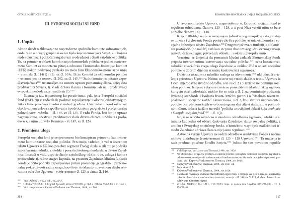 Doktrina ukazuje na nekoliko razloga za takvo stanje , 1028 uključujući i rješenja prisutna u Ugovoru . Naime , u izvornoj verziji , dakle , u tekstu Ugovora iz 1957 ., mjerodavne uvodne odredbe , a to su čl . 2 i 3 , izričito ne pominju socijalnu politiku . Izmjene i dopune izvršene posredstvom Mastrihtskog ugovora koriguju ovaj nedostatak , utoliko što se sada u čl . 2 , uz pominjanje podizanja životnog standarda i kvaliteta života , izričito govori i o “ visokom nivou zaposlenosti i socijalne zaštite ”. Istovremeno , u čl . 3 , koji statuira instrumente i politike posredstvom kojih se ostvaruju generalni ciljevi statuirani u prethodnom članu , sada se izričito navodi i “ politika u socijalnoj oblasti koja obuhvata i Evropski socijalni fond ” 1029 – čl . 3 ( j ).