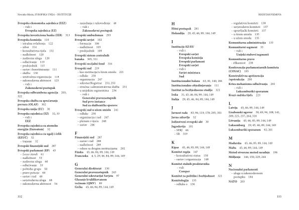 Evropska komisija 110 – istražna ovlaštenja 122 – izbor 114 – konsultativna tijela 132 – nadležnost 120 – nadzorna uloga 120 – odlučivanje 119 – predsjednik 115 – sastav i konstituisanje 111 – službe 130 – unutrašnja organizacija 118 – zakonodavna aktivnost 123