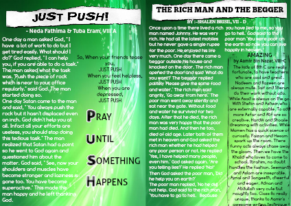 One day Satan came to the man and said, " You always push the rock but it hasn't displaced even an inch. God didn't help you at all. Infact all your efforts are useless, you should stop doing this tedious task." The man realized that Satan had a point so he went to God again and questioned him about the matter. God said, " See, now your shoulders and muscles have become stronger and laziness is gone too. You have become superactive." This made the man happy and he left thanking God.