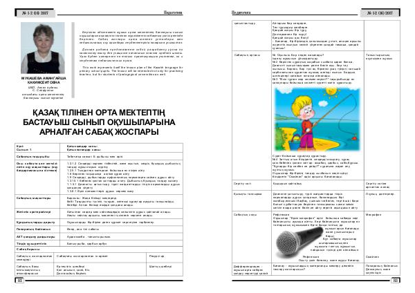 This work represents itself the lesson plan of the Kazakh language for primary school pupils. The lesson will be interested not only for practicing teaches, but for students of pedagogical universities as well.
