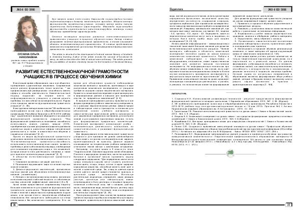 РАЗВИТИЕ ЕСТЕСТВЕННОНАУЧНОЙ ГРАМОТНОСТИ УЧАЩИХСЯ В ПРОЦЕССЕ ОБУЧЕНИЯ ХИМИИ