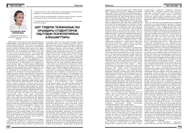 Мақала ағылшын тілін техникалық оқу орындарының студенттеріне оқытудың психологиялық аспекттерін қарастырады.