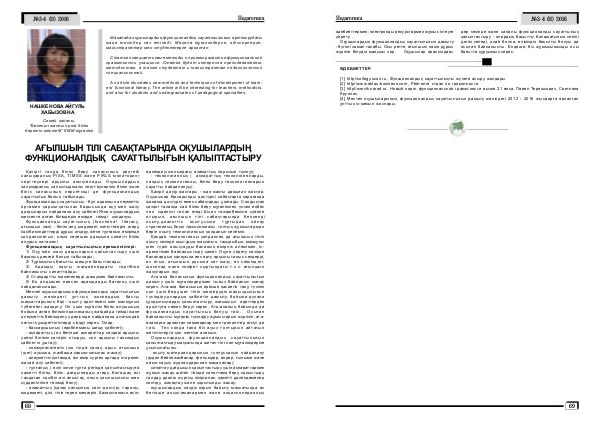 АҒЫЛШЫН ТІЛІ САБАҚТАРЫНДА ОҚУШЫЛАРДЫҢ ФУНКЦИОНАЛДЫҚ САУАТТЫЛЫҒЫН ҚАЛЫПТАСТЫРУ