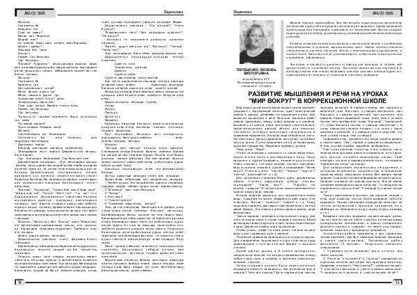 РАЗВИТИЕ МЫШЛЕНИЯ И РЕЧИ НА УРОКАХ " МИР ВОКРУГ " В КОРРЕКЦИОННОЙ ШКОЛЕ