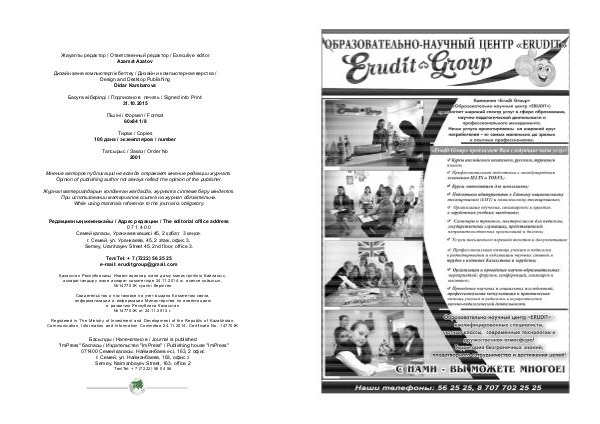 Журнал материалдарын қолданған жағдайда, журналға сілтеме беру міндетті.