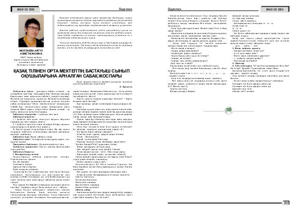 This work represents itself the lesson plan of the Kazakh language for primary school pupils. The lesson will be interested not only for practicing teaches, but for students of pedagogical universities as well.