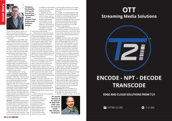 “ Equally, AI can help broadcasters make sense of the vast amount of legacy data they already have at their disposal. This data can be analysed and used to predict popular programmes, including when best to broadcast to increase ratings and many other factors that should be considered when making a programme and delivering it to the right audience at the right time.”