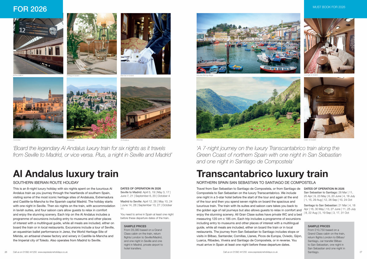 SAMPLE PRICES From £ 10,750 based on a Grand Class cabin on the train, return flights London to Bilbao / Santiago, car transfer Bilbao to San Sebastian, one night in San Sebastian and one night in Santiago.