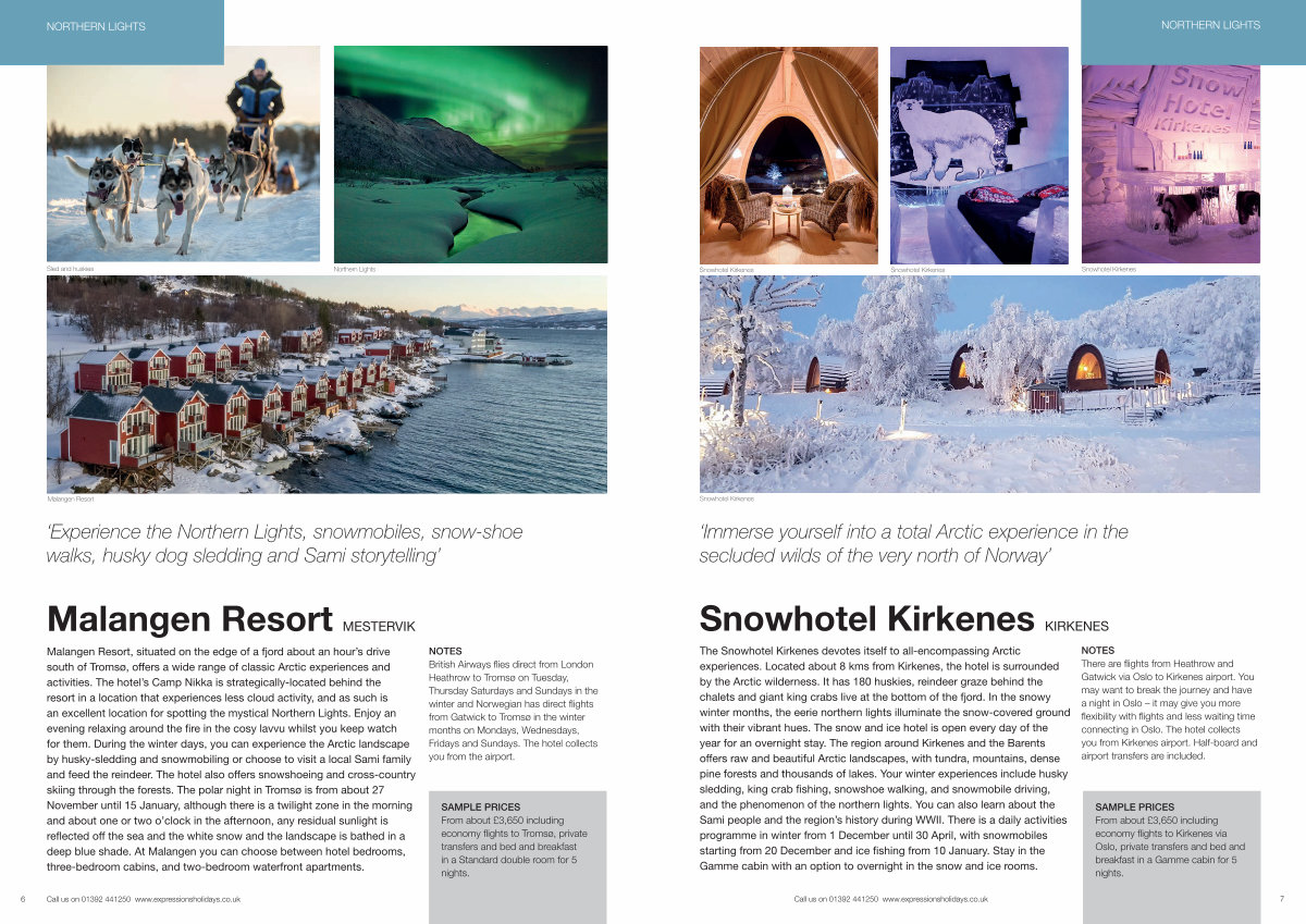 SAMPLE PRICES From about £ 3,650 including economy flights to Tromsø, private transfers and bed and breakfast in a Standard double room for 5 nights.
