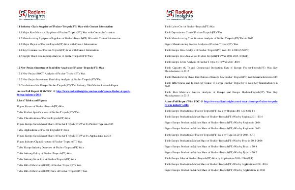 Access Full Report With TOC @ http://www.radiantinsights.com/research/europe-fischer-tropschft-wax-industry-2016