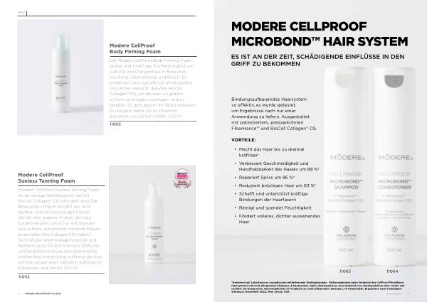 † Basierend auf Labortests an europäischen mittelbraunen Echthaarproben . Glätteergebnisse beim Vergleich des CellProof MicroBond Haarsystems mit nicht pflegendem Shampoo , 8 Haarproben . Spliss-Endergebnisse zum Vergleich von unbehandeltem Haar vorher und nachher , 50 Haarproben . Bruchergebnisse im Vergleich zu nicht pflegendem Shampoo , 10 Haarproben . Ergebnisse nach einmaligem Gebrauch . November 2022 , New Jersey , USA . www . modere . eu 41