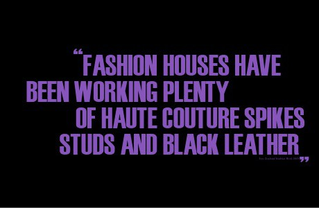 “fashion houses have been working plenty of haute couture spikes studs and black leather “ New Zealand Fashion Week 2013