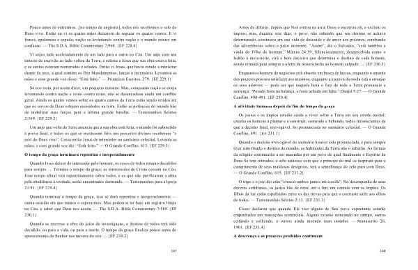 Quando se encerrar a obra do juízo de investigação , o destino de todos terá sido decidido , ou para a vida , ou para a morte . O tempo da graça finaliza pouco antes do aparecimento do Senhor nas nuvens do céu . ... { EF 230.2 }