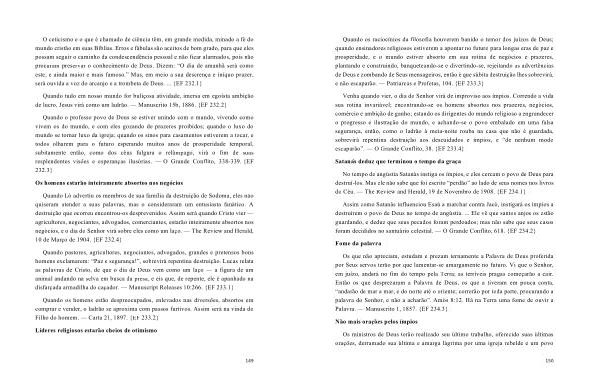 Quando o professo povo de Deus se estiver unindo com o mundo , vivendo como vivem os do mundo , e com eles gozando de prazeres proibidos ; quando o luxo do mundo se tornar luxo da igreja ; quando os sinos para casamentos estiverem a tocar , e todos olharem para o futuro esperando muitos anos de prosperidade temporal , subitamente então , como dos céus fulgura o relâmpago , virá o fim de suas resplendentes visões e esperanças ilusórias . — O Grande Conflito , 338-339 . { EF 232.3 }