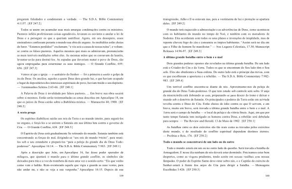 Um terrível conflito encontra-se diante de nós . Aproximamo-nos da peleja do grande dia do Deus Todo-poderoso . O que tem estado sob controle será solto . O anjo da misericórdia está dobrando as asas , preparando-se para descer do trono e deixar o mundo sob o domínio de Satanás . Os principados e poderes da Terra estão em acirrada revolta contra o Deus do Céu . Estão cheios de ódio contra os que O servem , e em breve , muito em breve , será travada a última grande batalha entre o bem e o mal . A Terra será o campo de batalha — o local da peleja e da vitória finais . Aqui , em que por tanto tempo Satanás tem instigado os homens contra Deus , a rebelião será debelada para sempre . — The Review and Herald , 13 de Maio de 1902 . { EF 250.1 }
