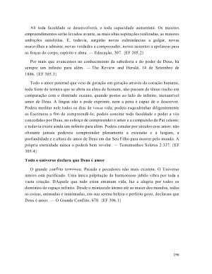 O grande conflito terminou . Pecado e pecadores não mais existem . O Universo inteiro está purificado . Uma única palpitação de harmonioso júbilo vibra por toda a vasta criação . DAquele que tudo criou emanam vida , luz e alegria por todos os domínios do espaço infinito . Desde o minúsculo átomo até ao maior dos mundos , todas as coisas , animadas e inanimadas , em sua serena beleza e perfeito gozo , declaram que Deus é amor . — O Grande Conflito , 678 . { EF 306.1 }