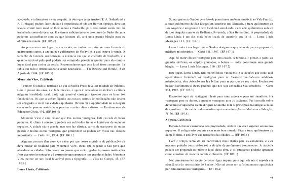 Mountain View é uma cidade que tem muitas vantagens . Está cercada de belos pomares . O clima é ameno , e podem ser cultivadas frutas e hortaliças de todas as espécies . A cidade não é grande , mas tem luz elétrica , carros de transporte de malas postais e muitas outras vantagens que geralmente só podem ser vistas nas cidades importantes . — Carta 141 , 1904 . { EF 106.1 }