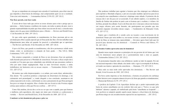 Mais cedo ou mais tarde serão aprovadas leis dominicais . — The Review and Herald , 16 de Fevereiro de 1905 . { EF 128.4 }