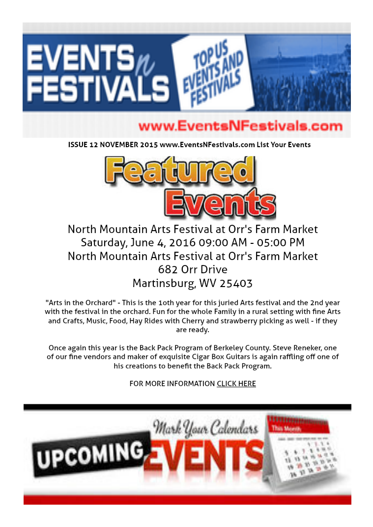 ISSUE 12 NOVEMBER 2015 www.EventsNFestivals.com List Your Events