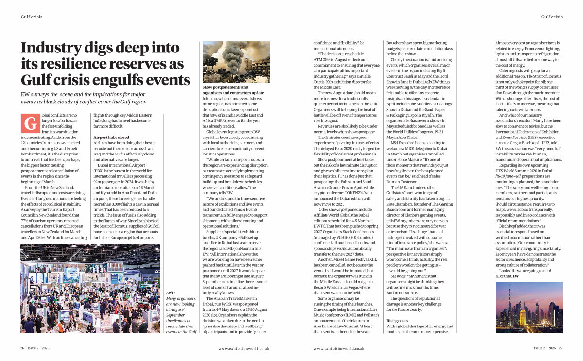 G longer local crises, as the fast-unfolding Iranian war situation is demonstrating. Aside from the 12 countries Iran has now attacked and the continuing US and Israeli bombardment, it is the disruption to air travel that has been, perhaps, the biggest factor causing postponement and cancellation of events in the region since the beginning of March.