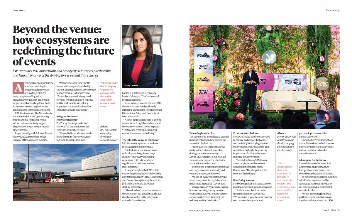 “ Many venues say they want to be more than a space,” says Diddy Durant, director business development management at RAI Amsterdam.“ For us, that starts with integrated services, from hospitality to logistics, but the real value lies in helping organisers connect with the wider ecosystem around their event.”