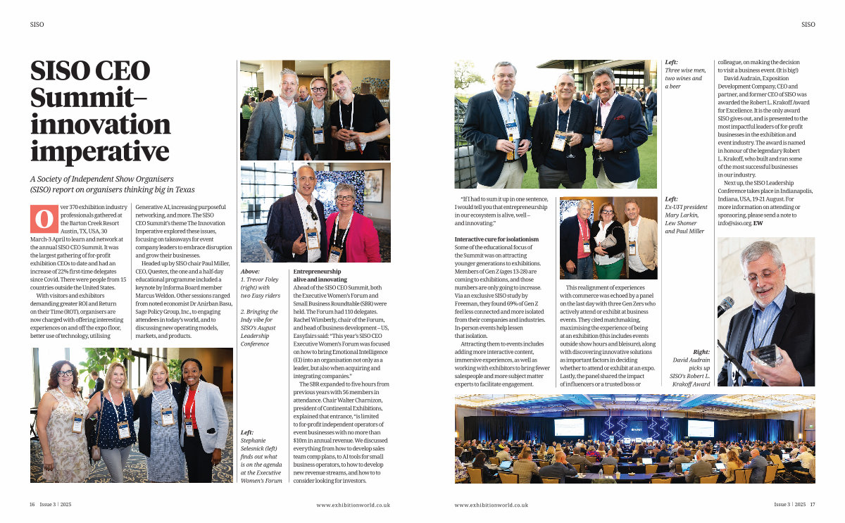 colleague, on making the decision to visit a business event.( It is big!) David Audrain, Exposition Development Company, CEO and partner, and former CEO of SISO was awarded the Robert L. Krakoff Award for Excellence. It is the only award SISO gives out, and is presented to the most impactful leaders of for-profit businesses in the exhibition and event industry. The award is named in honour of the legendary Robert L. Krakoff, who built and ran some of the most successful businesses in our industry.