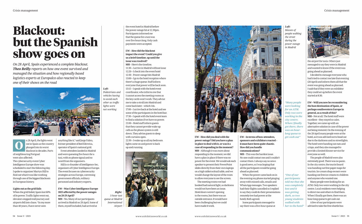 EW – Will you now be reconsidering the host destination of Spain, or perhaps southwestern Europe in general, as a result of this? MH – Not at all. The hotel staff were excellent – they stayed so calm. Together, we came up with an alternative solution in case of the power not being restored. On the evening of the 28 April many people were at the hotel, as it was advised not to head out due to the darkness and no streetlights. The hotel were handing out nuts and crisps, and they also managed to provide a limited dinner service for everyone as well.