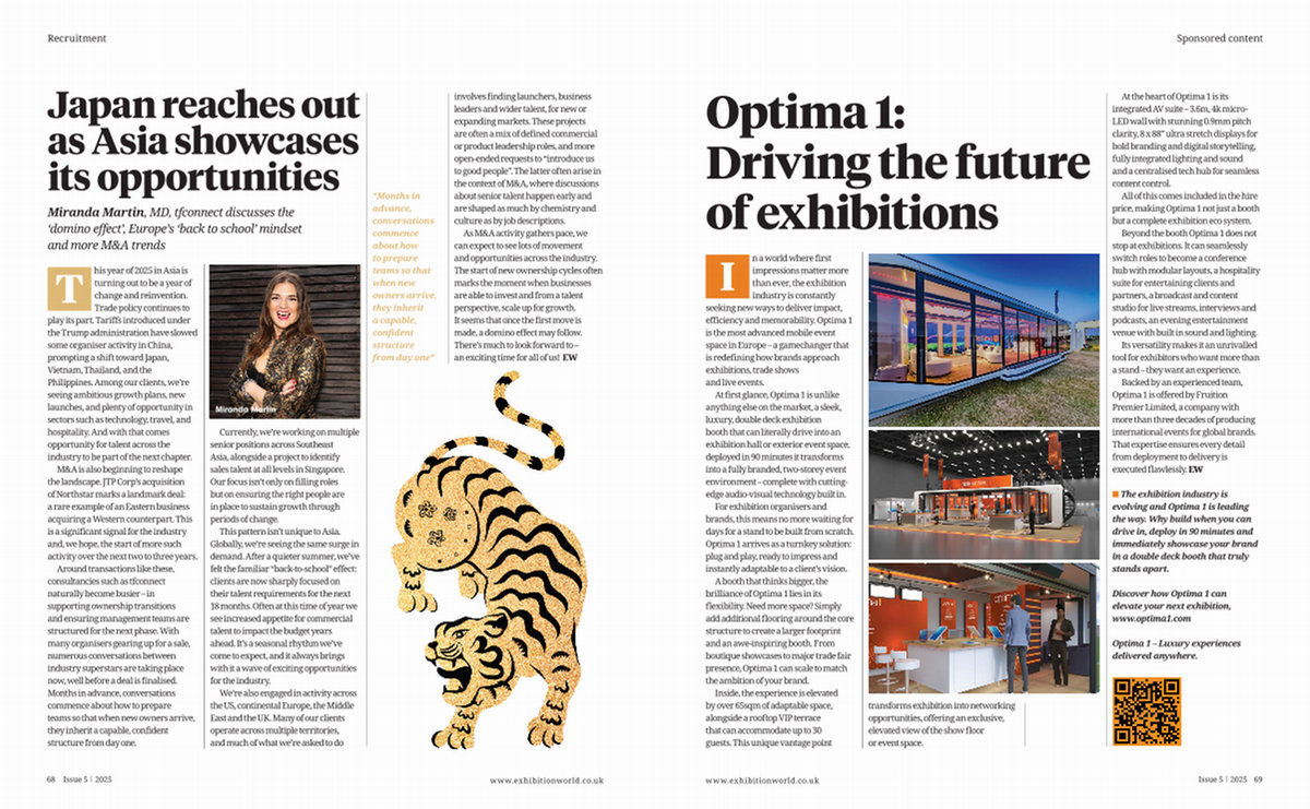 Optima 1 – Luxury experiences delivered anywhere. www. exhibitionworld. co. uk Issue 5 2025 69