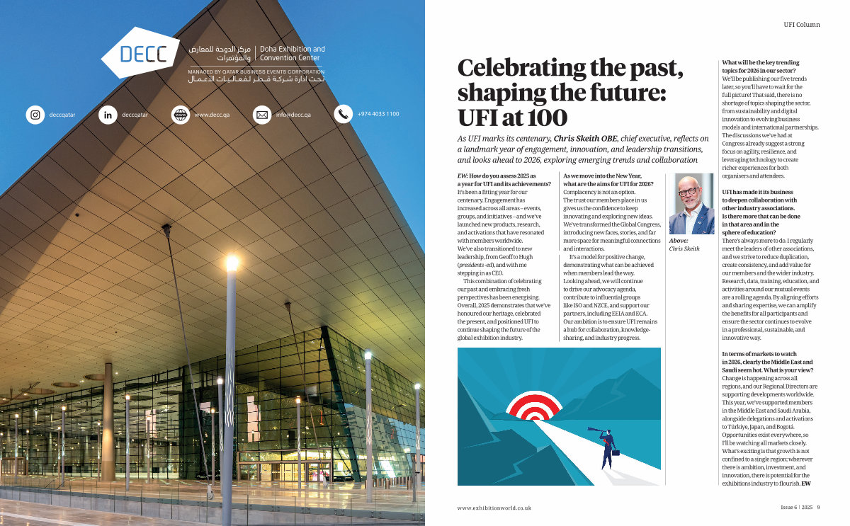 As UFI marks its centenary, Chris Skeith OBE, chief executive, reflects on a landmark year of engagement, innovation, and leadership transitions, and looks ahead to 2026, exploring emerging trends and collaboration
