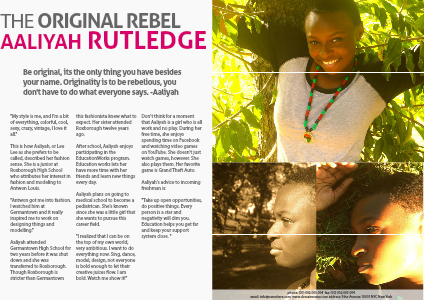 This is how Aaliyah, or Lee Lee as she prefers to be called, described her fashion sense. She is a junior at Roxborough High School who attributes her interest in fashion and modeling to Antwon Louis.