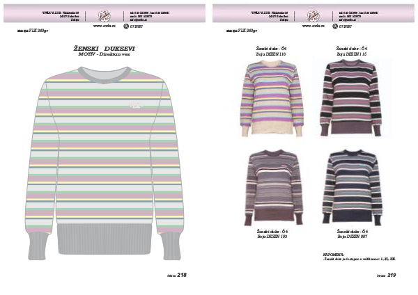 - Ženski duks je dostupan u veličinama: L, XL, XXL