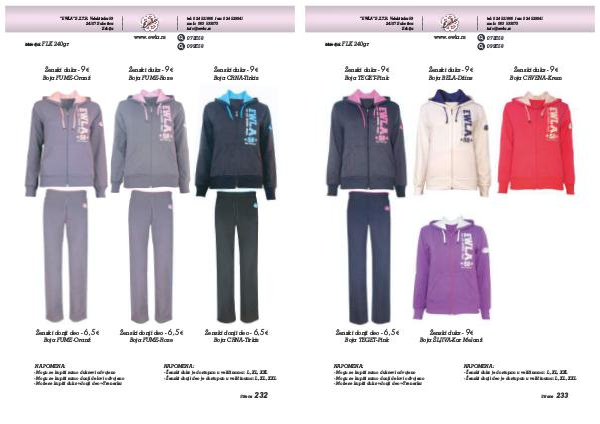 - Ženski donji deo je dostupan u veličinama: L, XL, XXL