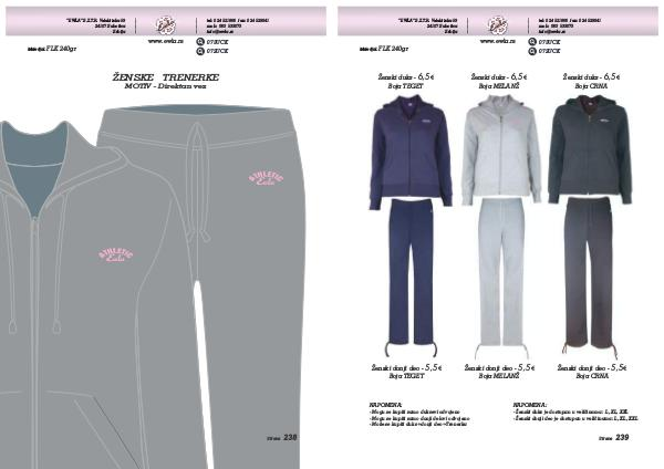 - Ženski donji deo je dostupan u veličinama: L, XL, XXL