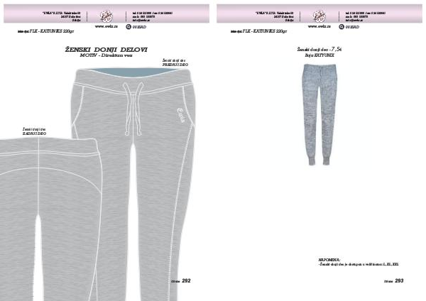 - Ženski donji deo je dostupan u veličinama: L, XL, XXL