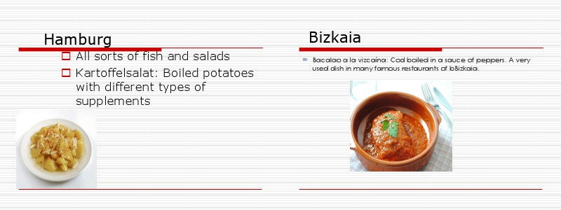 Hamburg All sorts of fish and salads Kartoffelsalat: Boiled potatoes with different types of supplements
