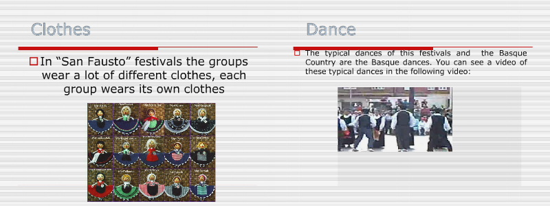 In “San Fausto” festivals the groups wear a lot of different clothes, each group wears its own clothes