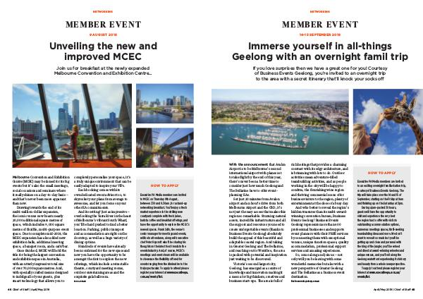 Executive PA Media members are invited to MCEC on Thursday 9th August, between 7.30 and 9.30am, for a stand-up networking breakfast. You’ ll enjoy a fresh market experience in the striking new courtyard complete with fresh juices, barista coffee and breakfast offerings, and have the opportunity to explore the MCEC’ s newest spaces. Frank Scifo, the venue’ s senior manager for meetings and events, will be in attendance, along with executive chef Peter Haycroft who’ ll be sharing his thoughts on the latest food trends in the events industry. And, of course, MCEC’ s meetings and events team will be available to showcase the flexibility offered for events ranging from the diminutive to the truly spectacular. To apply to attend please register your interest at www. executivepa. com. au / events / list.