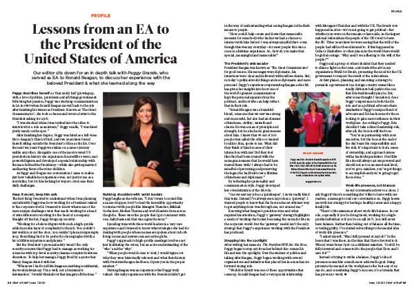 my talk with Peggy was how working for a President related