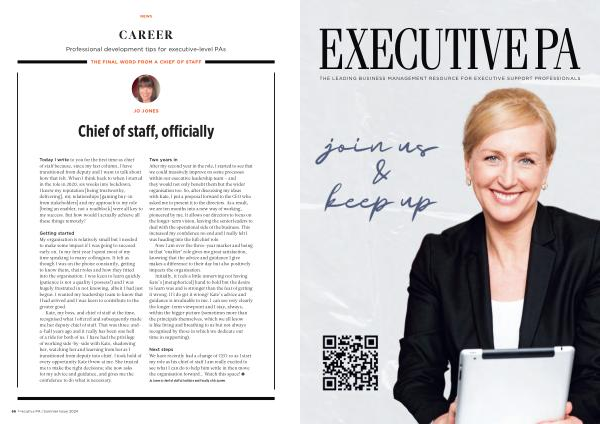 Two years in After my second year in the role , I started to see that we could massively improve on some processes within our executive leadership team – and they would not only benefit them but the wider organisation too . So , after discussing my ideas with Kate , I put a proposal forward to the CEO who asked me to present it to the directors . As a result , we are ten months into a new way of working , pioneered by me . It allows our directors to focus on the longer-term vision , leaving the senior leaders to deal with the operational side of the business . This increased my confidence no end and I really felt I was heading into the full chief role .