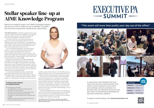 The 30th anniversary of Australia ’ s premier business event is sure to be a great one with an incredible line-up of speakers and topics on the day prior to the exhibition kicking off – savvy EAs will find plenty of inspiration and ideas .