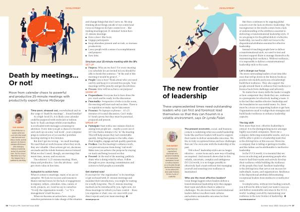 DEVELOPMENT and change things that don ’ t serve us . We stop thinking about things outside of our control and focus on things we do have control over – like making meetings just 25-minutes ! Action hero 25-minute meetings : w Have a laser-like focus w Engage participants w Keep attendees present and on task , so increase productivity w Leave people with a sense of accomplishment and purpose w Save time .