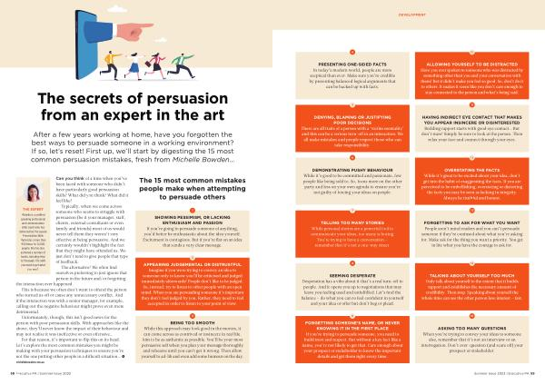 After a few years working at home , have you forgotten the best ways to persuade someone in a working environment ? If so , let ’ s reset ! First up , we ’ ll start by digesting the 15 most common persuasion mistakes , fresh from Michelle Bowden …
