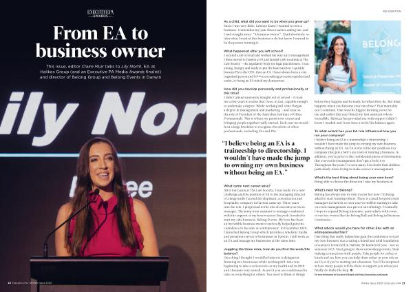 “ I believe being an EA is a traineeship to directorship . I wouldn ’ t have made the jump to owning my own business without being an EA .”