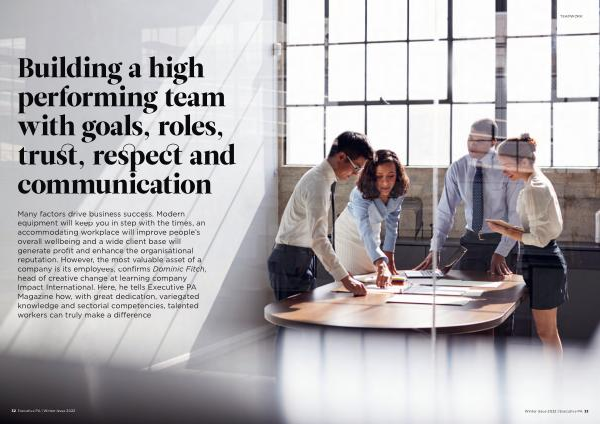Many factors drive business success . Modern equipment will keep you in step with the times , an accommodating workplace will improve people ’ s overall wellbeing and a wide client base will generate profit and enhance the organisational reputation . However , the most valuable asset of a company is its employees , confirms Dominic Fitch , head of creative change at learning company Impact International . Here , he tells Executive PA Magazine how , with great dedication , variegated knowledge and sectorial competencies , talented workers can truly make a difference