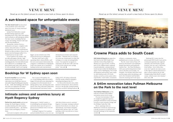 VENUE MENU Read up on the latest venues to unveil a new look or throw open its doors