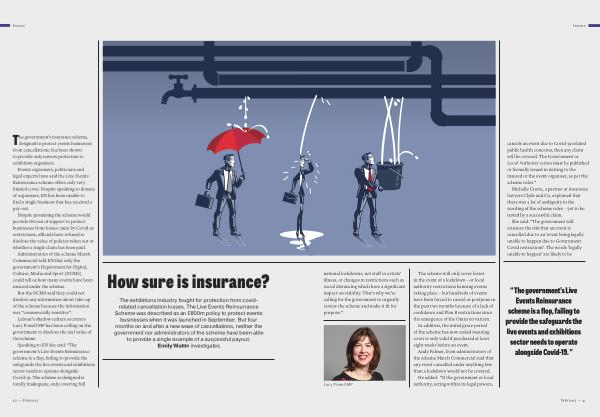 The exhibitions industry fought for protection from covidrelated cancellation losses . The Live Events Reinsurrance Scheme was described as an £ 800m policy to protect events businesses when it was launched in September . But four months on and after a new wave of cancellations , neither the government nor administrators of the scheme have been able to provide a single example of a successful payout . Emily Wallin investigates