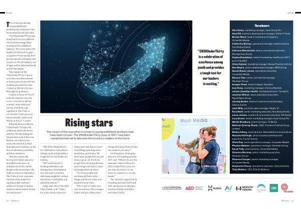 Alex Oxley , marketing manager , Hyve Group Plc Amy Hill , business development manager , Clarion Events Brodie Ward , head of conference & logistics , CloserStill Media Catherine Bishop , operations manager , National Game Fair / Stable Events Catriona Macdonald , senior commercial executive , Montgomery Group Caylee Donaldson , head of marketing , healthcare HETT , part of GovNet Chloe Hyland , marketing manager , Messe Frankfurt UK Ltd Dan Noyce , senior relationship manager , IMEX Group Daniel Evans-Jones , operations executive , CloserStill Media Eleanor Hall , senior commercial manager , Nineteen Group Imogen Thain , head of digital , Easyfairs Izzy Viney , marketing manager , Informa Markets James Llewellyn-Smith , marketing director , Terrapinn Jasmine Wilson , event operations executive , Rapid News Group Jeremy Roden , head of customer & partnerships , Clarion Events Josh Mills , portfolio sales manager , Media 10 Kara Neill , senior marketing executive , Broadway Events Laura Jensen , content & community executive , RX Global Lucy Green , senior marketing manager , Hyve Group Plc Mattie Bradbury , event manager , 73 Media Mehram Sumray-Roots , CMO , Freshers Festival Group Limited Melina Viking , event director , Diversified Communications Natasha Hattingh , senior business development executive , Clarion Events Olivia Day , event operations manager , Campden Wealth Phoebe Watson , operations manager , Nineteen Group Sarah Tully , event director , CloserStill Media Shannon Mooney , senior marketing executive , Nineteen Group Shannon Cargan , senior marketing manager , CloserStill Media Stephanie Fleury , operations executive , Clarion Events Toby Walters , CEO , Elite Exhibitions