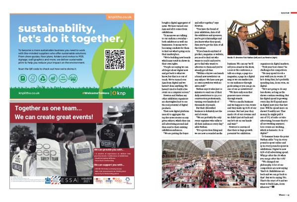 Interview bought a digital aggregator of news . We have turned over £ 4m and all it comes from exhibitions . “ It means we are talking to our audience everyday – both exhibitors as well our businesses . It means we ’ re becoming conduits for them to find out what ’ s going on in their marketplace . “ We ’ re building new brands which may result in shows in their own rights . “ People are saying we can all forget about digital now and get back to what we know , but that is so out of touch . We ’ ve turned over £ 4m from digital and we haven ’ t done anything . We haven ’ t tried to build a live event on a computer screen .” Newton and Nathan say other exhibition organisers are shortsighted not to see the real potential of digital products . Their new digital platform uses AI to aggregate the top five news stories on any given subject , which they can sell advertising around and then send to their existing exhibition audiences . “ We are putting the buyer and seller together ,” says Newton . “ You have the brand of your exhibition , data of all the exhibitors and sponsors , you ’ ve got relationships and you know what they spend , then you ’ ve got the data of all the visitors . “ If you launch any kind of product , magazine or website , you need to find out who wants to read it and you ’ ve got to find who wants to advertise to them and you ’ ve already got all that . “ Within a day we can launch a brand new newsletter on any subject . We have now got 20 extra newsletter with no extra staff .” Nathan says it takes just 10 minutes to send one of their daily newsletters to 150,000 construction professionals , turning over hundreds of thousands of pounds . But their diversified business is definitely not the end of events . “ We are probably the only event organiser who talks to all their audiences every day ,” adds Nathan . “ It ’ s a protection thing and we are now a rounded media